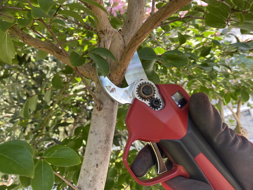 Nůžky zvládnou střih větví do průměru 25 mm a jsou vybaveny funkcí zmenšeného rozevření čepelí na 60 %, která výrazně zrychluje práci při stříhání tenčích větví do cca 15 mm. Nízká hmotnost a ergonomický tvar snižují únavu zápěstí i při dlouhodobém používání.